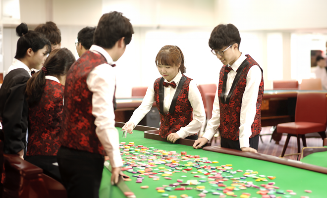 | 2학년 | 복합리조트 실무자 양성 중심의 전공 직무 능력 함양 | 룰렛 게임진행, 카지노마케팅 기획실무 이미지 메이킹 및 메이크업 서비스 인적자원관리, 블랙젝 게임 진행 비즈니스 커뮤니케이션, 사례연구 등 |